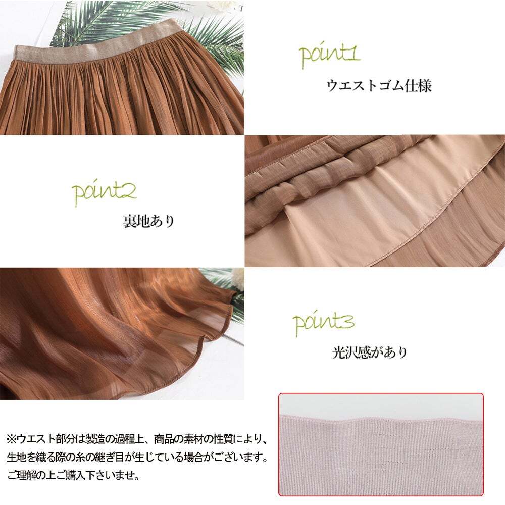 大人可愛い 体型カバー サテン風スカート 。光沢感があり、なめらかな質感が特徴のフレアスカート。