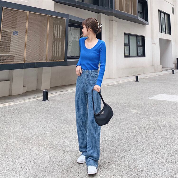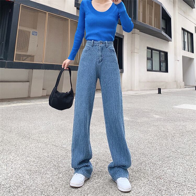 このハイウエスト スリム ニット ワイドレッグ ジーンズで、あなたのスタイルをより一層引き立ててみませんか?