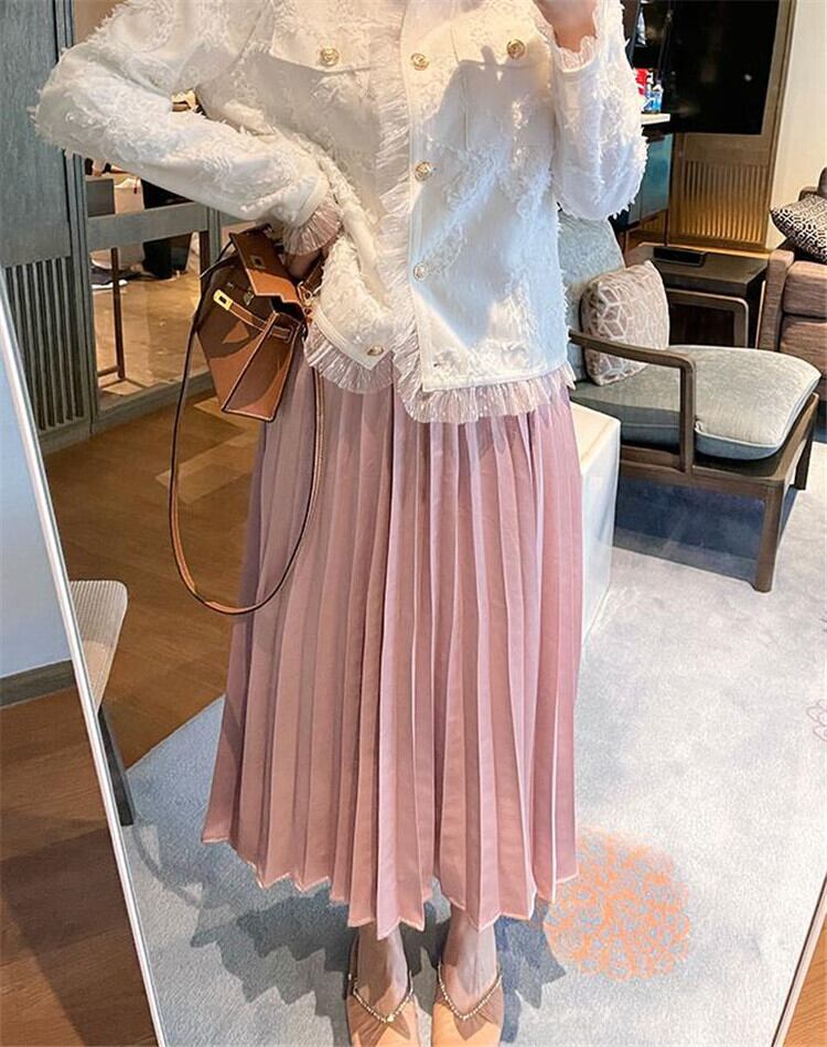 一枚で個性を演出できるハイウエストカレッジ風スカートです。韓国風のデザインで、ポリエステルとコットンの素材が上品な印象を与えます。プリーツが施されており、動くたびに広がるたびに女性らしいスタイルを演出します。ハイウエストデザインなので、脚長効果も期待できます。カジュアルなスタイリングからきれいめなフォーマルスタイリングまで幅広く合わせることができます。一枚で存在感を放つカレッジ風スカートで、大人の女性らしさを引き立ててみてはいかがでしょうか。
