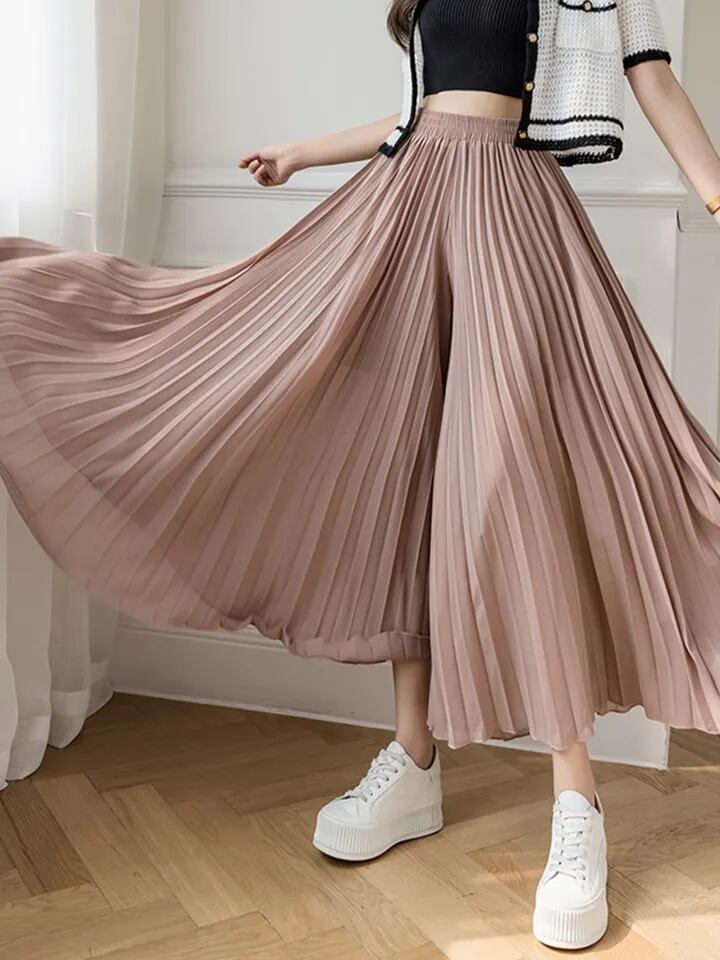 シフォンプリーツワイドレッグパンツ