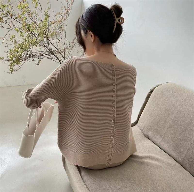 上品かつ女性らしい雰囲気を演出するニットトップス+スカートの二点セットです。