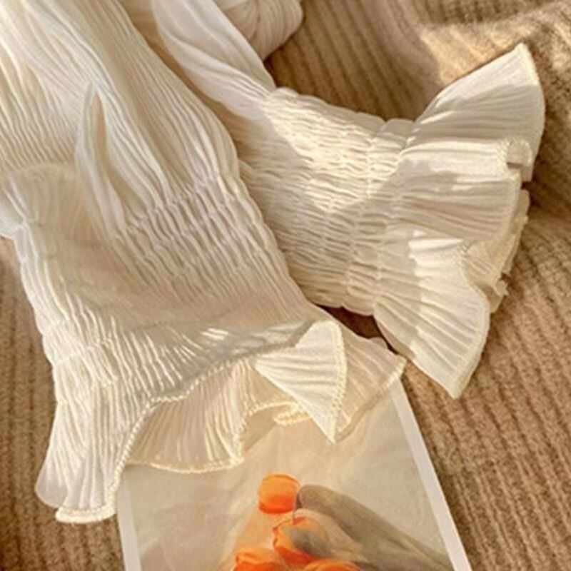 軽やかなシフォン生地が女性らしいフェミニンな印象を与え、ふんわりと広がるフレアーデザインが可愛らしいアクセントとなります。華奢なデザインながらも、身体のラインを美しく引き立たせるシルエットに仕上げられており、どんなボトムスとも相性抜群です。