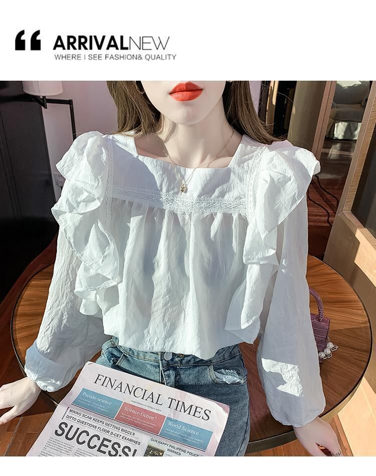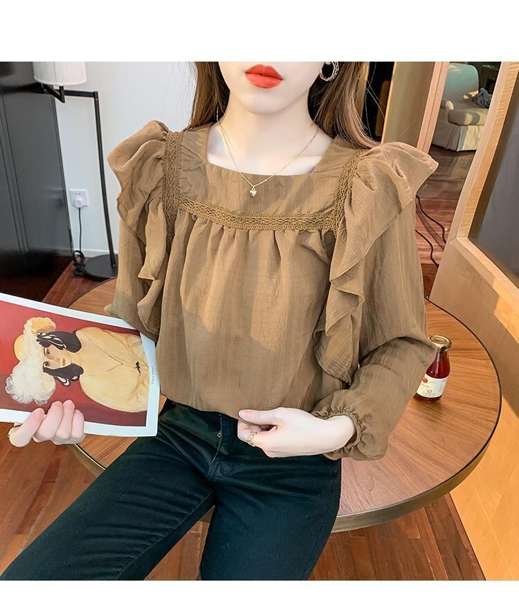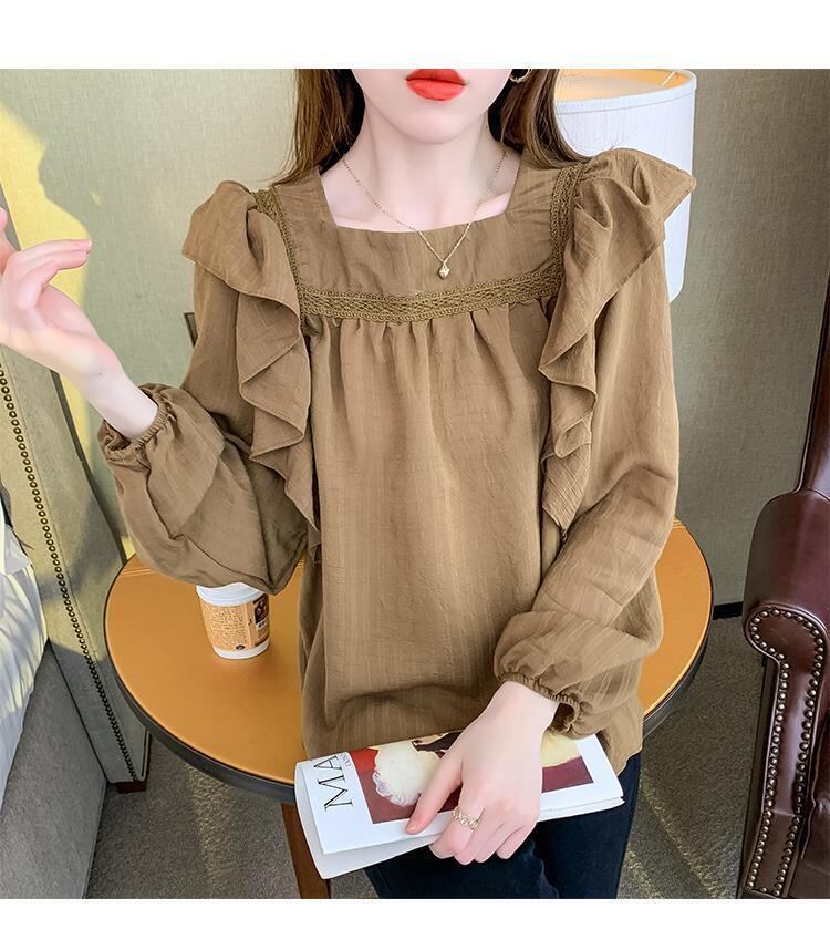 上品でエレガントなスクエラーカラーブラウス。シンプルながらも女性らしいデザインが特徴です。