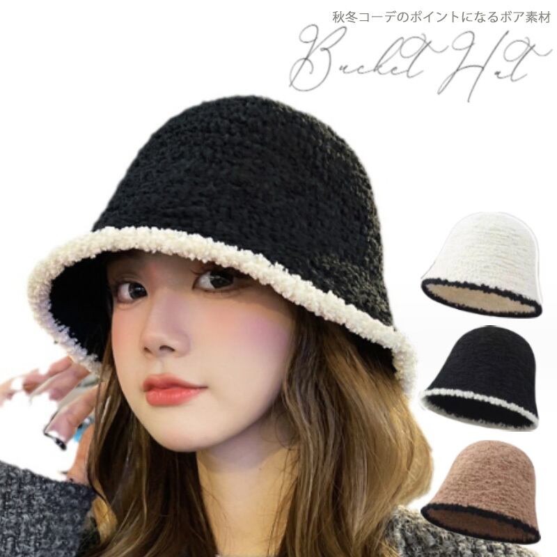 ・秋冬コーデのポイントになるボア素材、もこもこのあったかバケットハット。