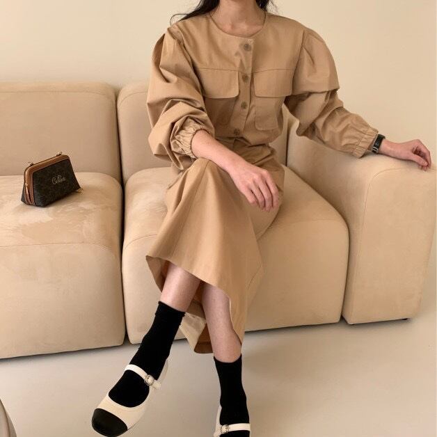 ラウンドネックチュニック ロングワンピース