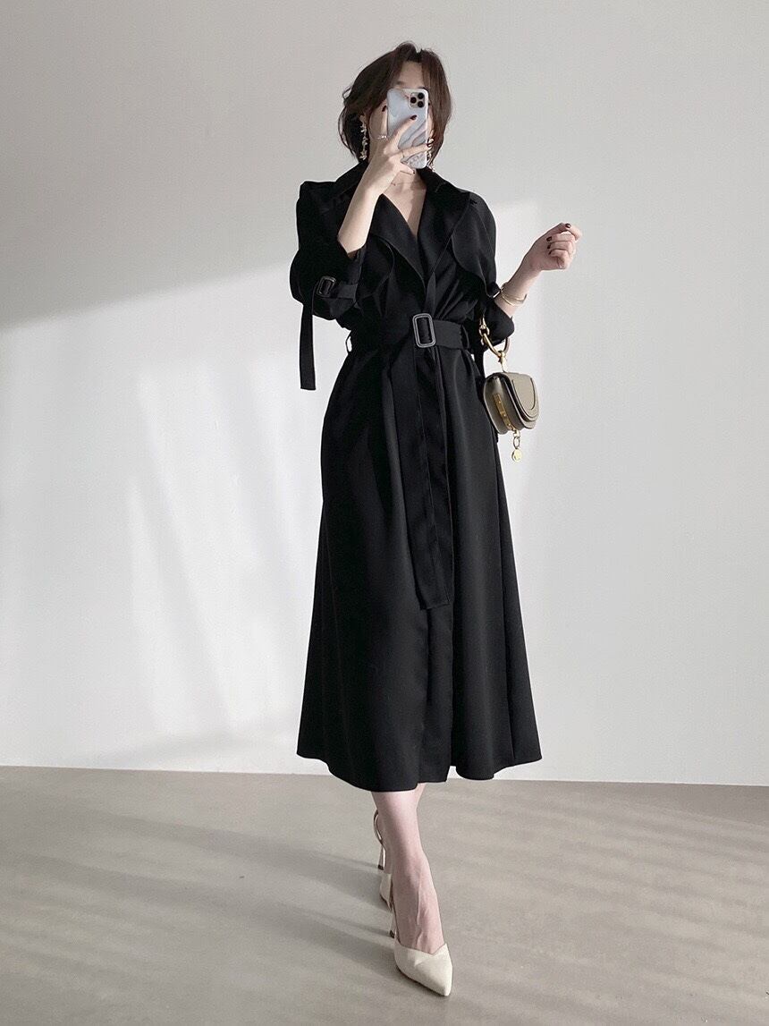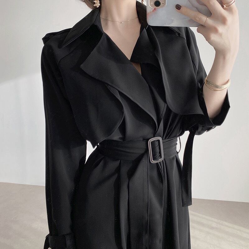 オシャレな大人女子にぴったりな折り襟 トレンチコートドレス ベルトチュニックワンピースです。折り襟デザインとトレンチコートの要素を組み合わせた一枚で、カッコいい印象を演出します。長めの丈とシルエットが綺麗なベルト付きデザインなので、体型カバーもしっかりできます。仕事やデート、パーティーなど様々な場面で活躍すること間違いなしです。