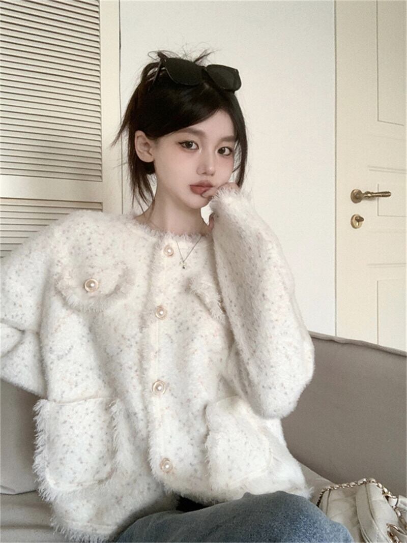 ラウンドネックとパールボタンが可愛らしさを引き立てます。大人女性にもぴったりの清楚なデザインです。コーディネート次第で、カジュアルな着こなしから、キレイめのおしゃれスタイルまで幅広く使えます。パールボタンにはこだわりを持ち、上品さを演出しています。暖かな素材感で、これからの季節にぴったりのアイテムです。