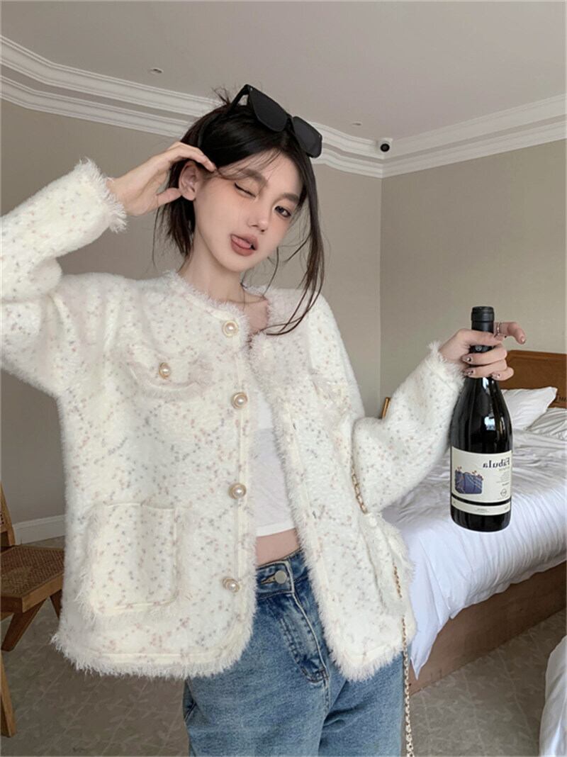 フェミニンな雰囲気漂うカジュアル chic ニットカーディガン。