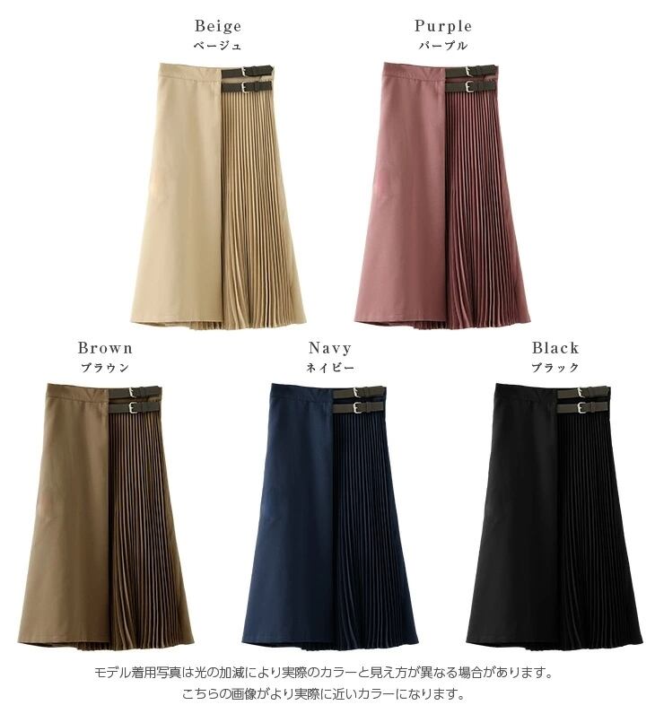 上品さと女性らしい可愛さが同居するプリーツベルト付きロングフレアスカート。