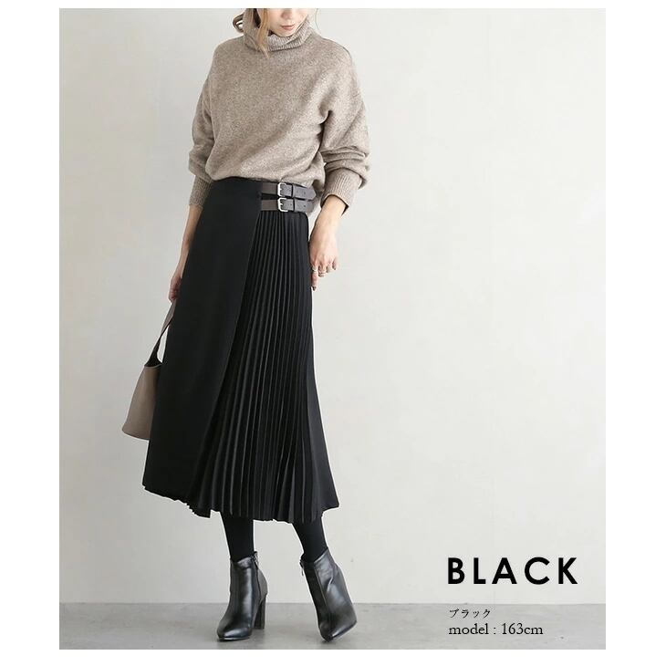 プリーツ ベルト付きロングフレアスカート