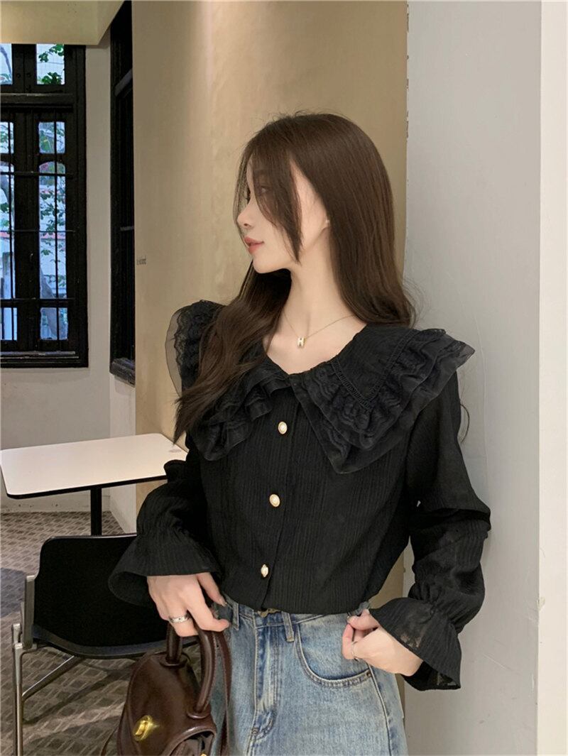 品の特徴でもある、フリル襟が愛らしいブラウスです。