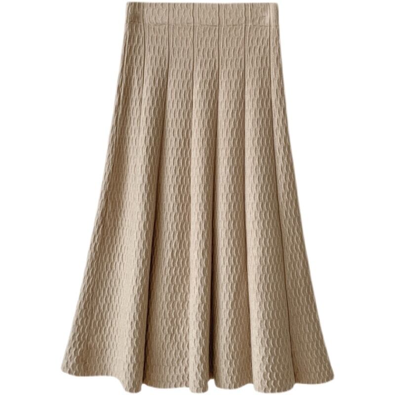 美しいシルエットが特徴のハイウエストAラインニットスカート。