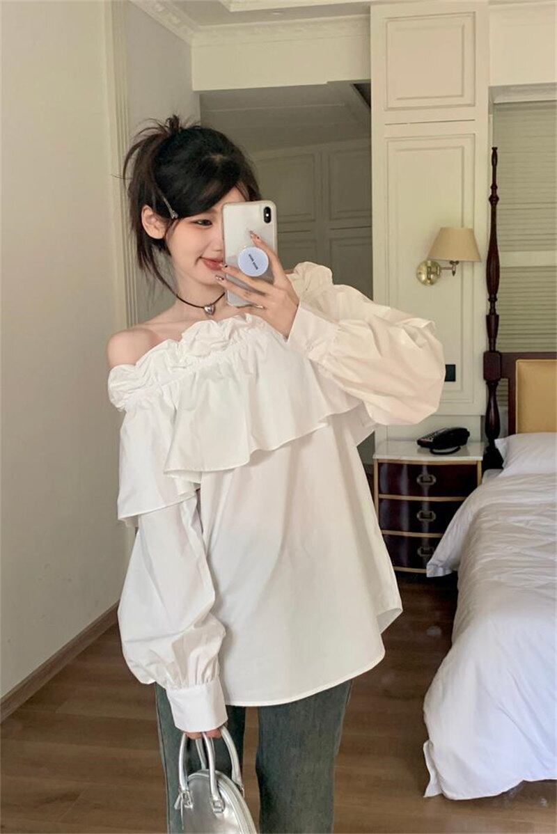 コットンとポリエステルの素材で、肌触りも良く快適な着心地です。オフショルダーのトレンド感と女性らしいデザインが相まって、スタイリッシュで華やかな印象を与えます。