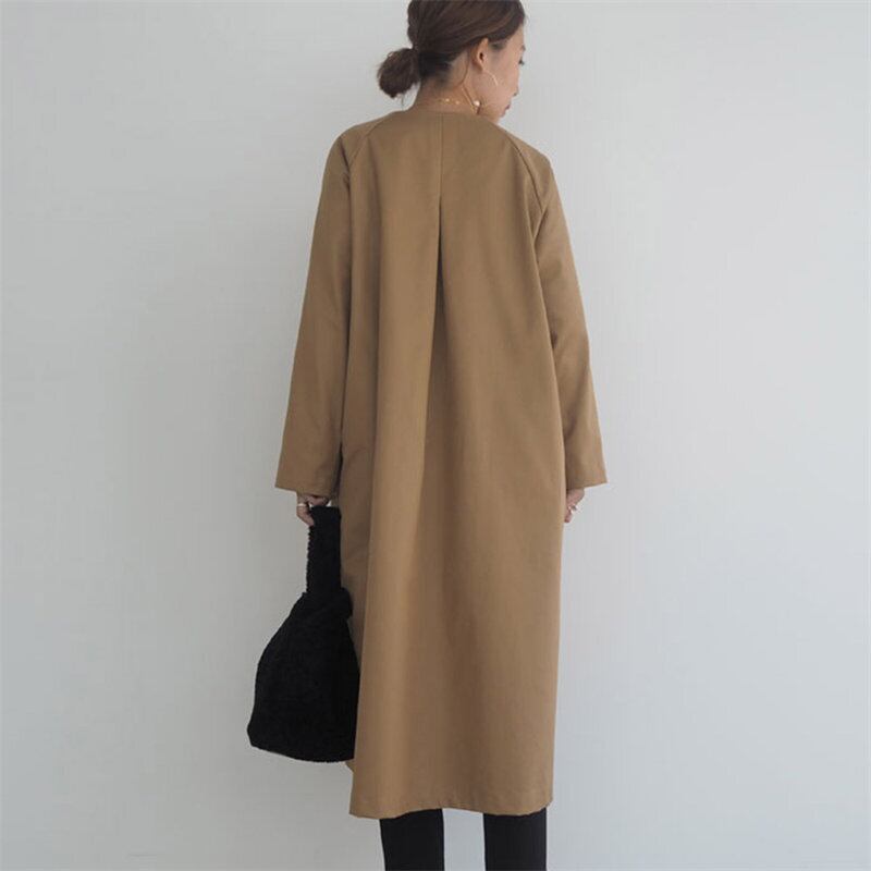 レトロで韓国風な雰囲気漂うロングジャケット✨カーキー色の絶妙な配色が、大人っぽさと可愛らしさを兼ね備えています。