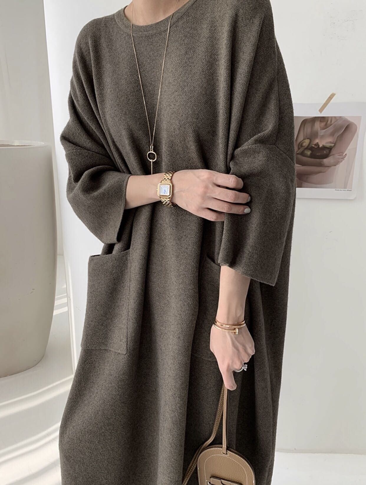 暖かみのある風合いが魅力のニットワンピースです。