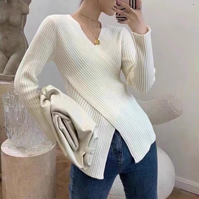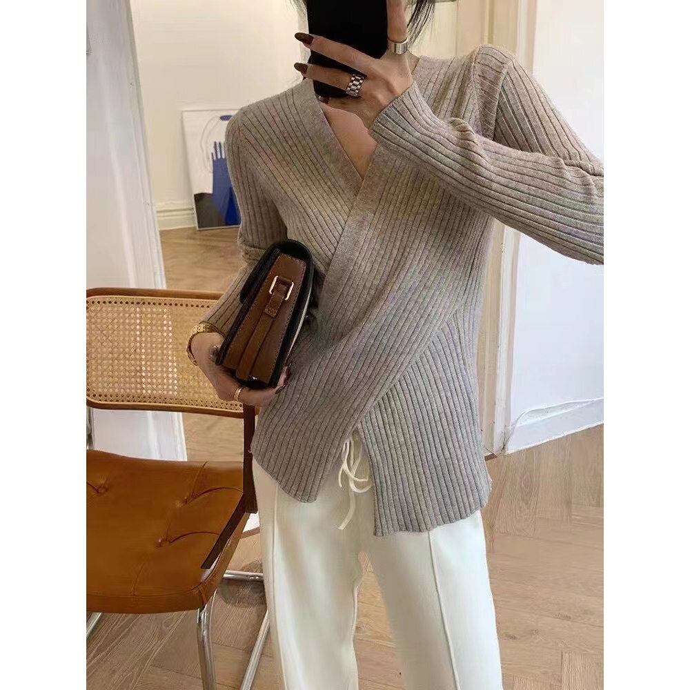 長袖 Vネック オフショルダー セーターは、2つのトレンドを取り入れたアイテムです✨