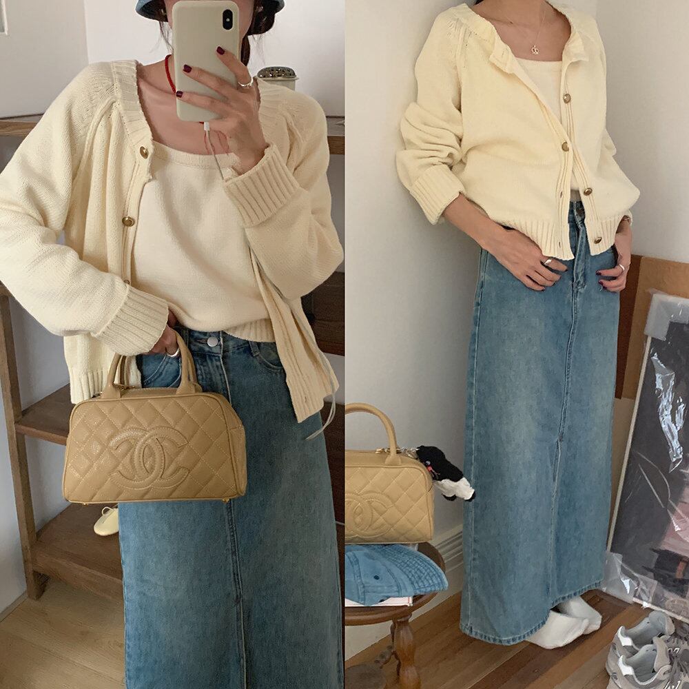 ベーシックなコーディネートを引き立てる、ニット タンクトップ +カーディガン セット✨