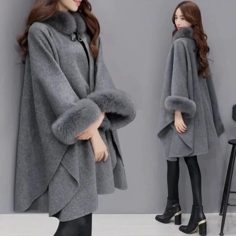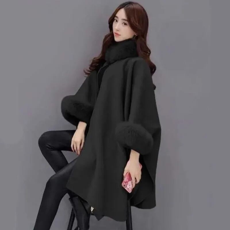 エレガントなスタイルを演出するウールケープコート✨