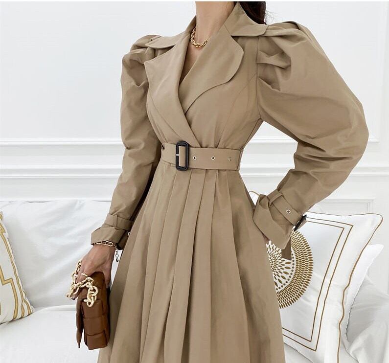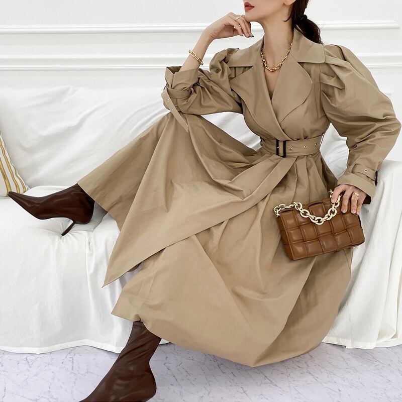 シンプルなデザインながらも、ベルト付きでウエストを細く見せることができるので、女性らしいシルエットを演出します✨