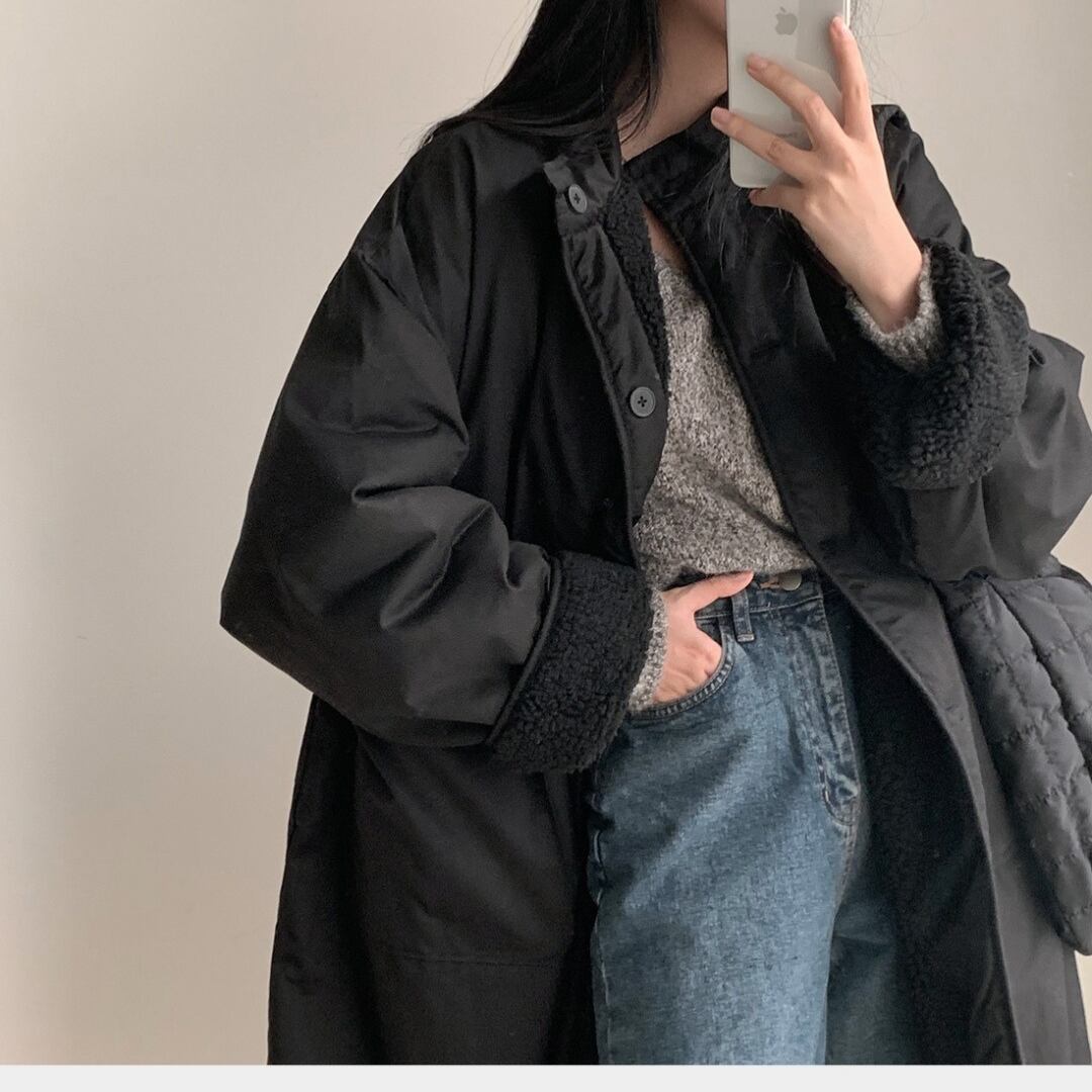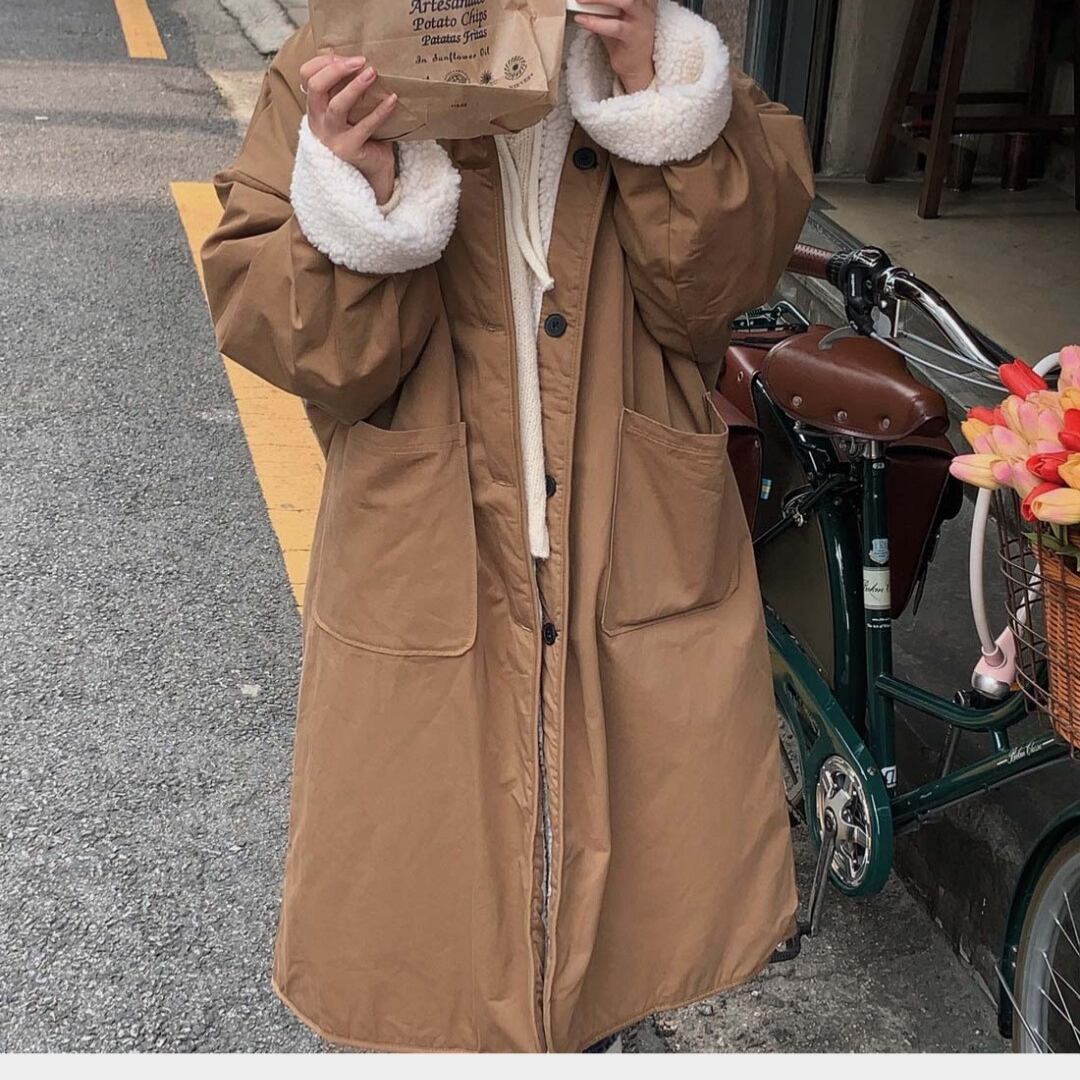 この冬、可愛いデザインでありながら温かさも兼ね備えたリバーシブルロングコートが新登場しました!コットンとポリエステルを使用し、柔らかな着心地を実現した贅沢な一着です✨