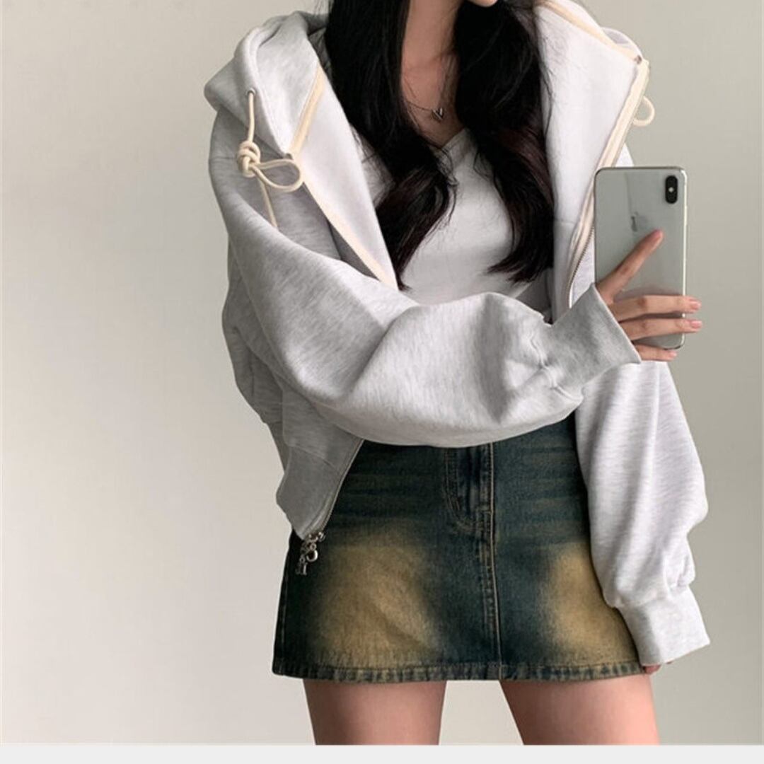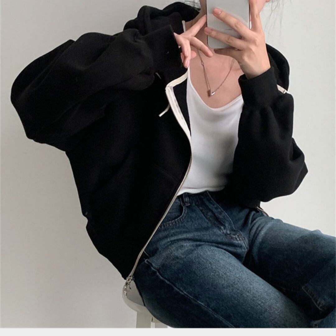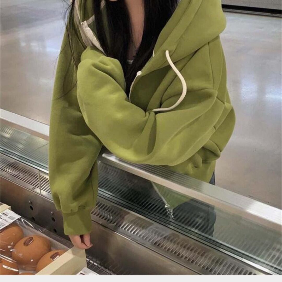 暖かさとスタイルを両立させた裏起毛カジュアルパーカー✨
