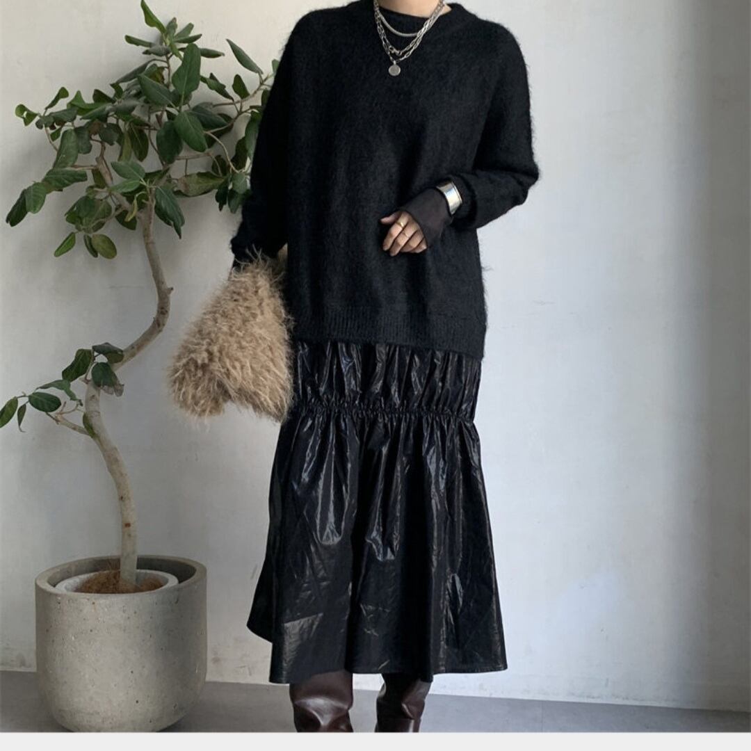 女性らしさを引き立てる、ニットドッキング おしゃれロングワンピース✨