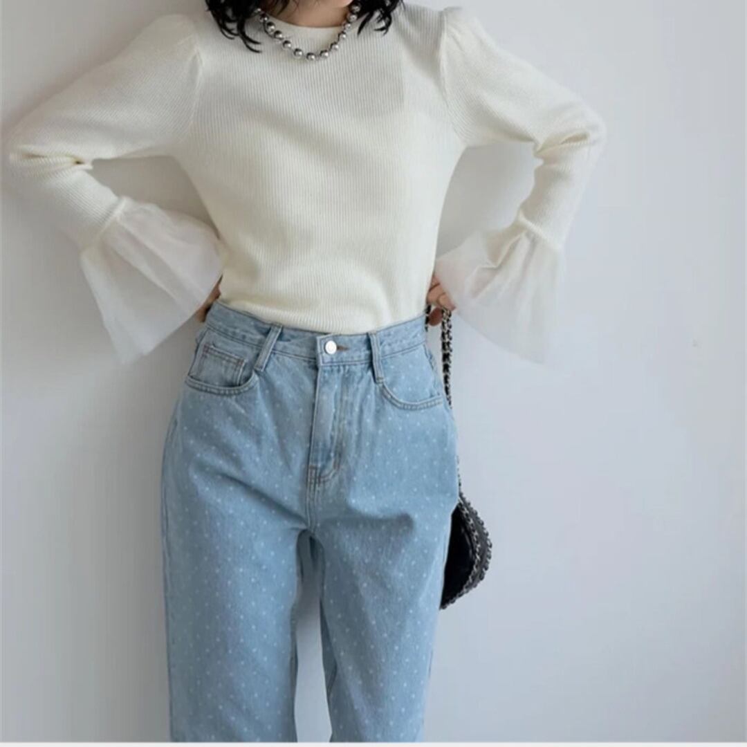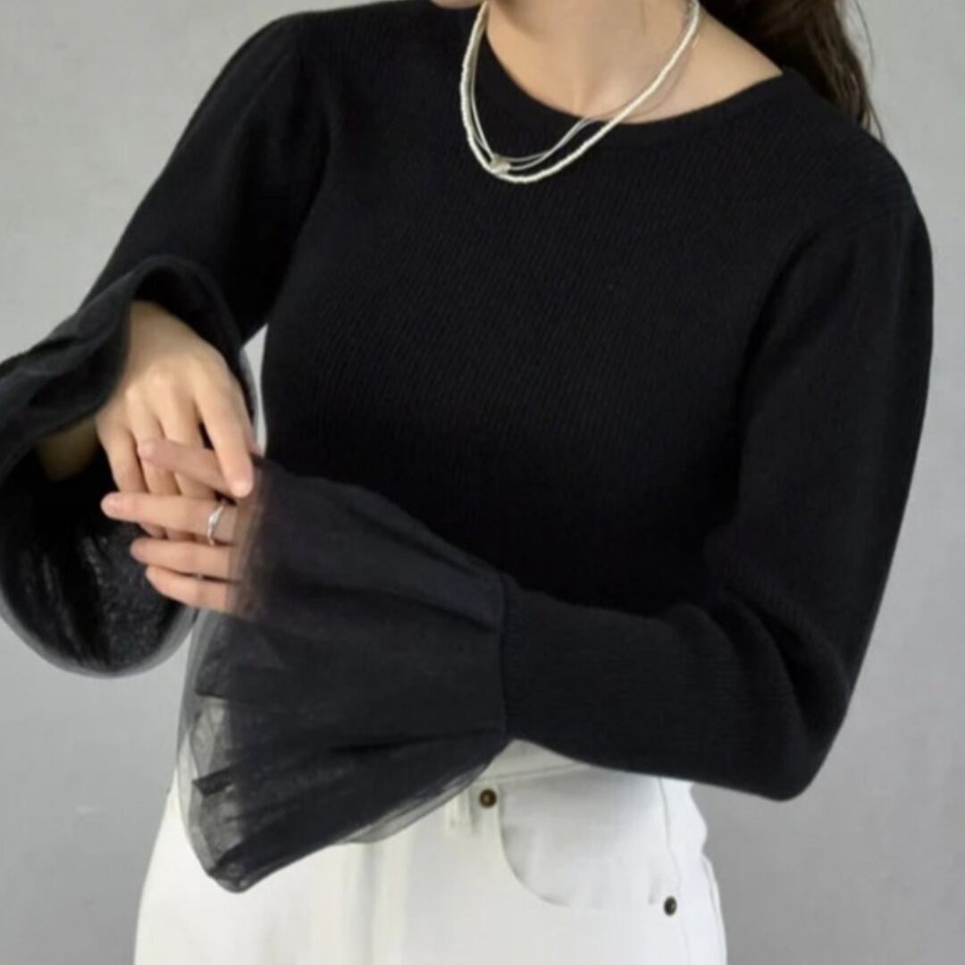 大人可愛い袖口フリジングニットで、シンプルだけど特別なスタイルを楽しもう✨