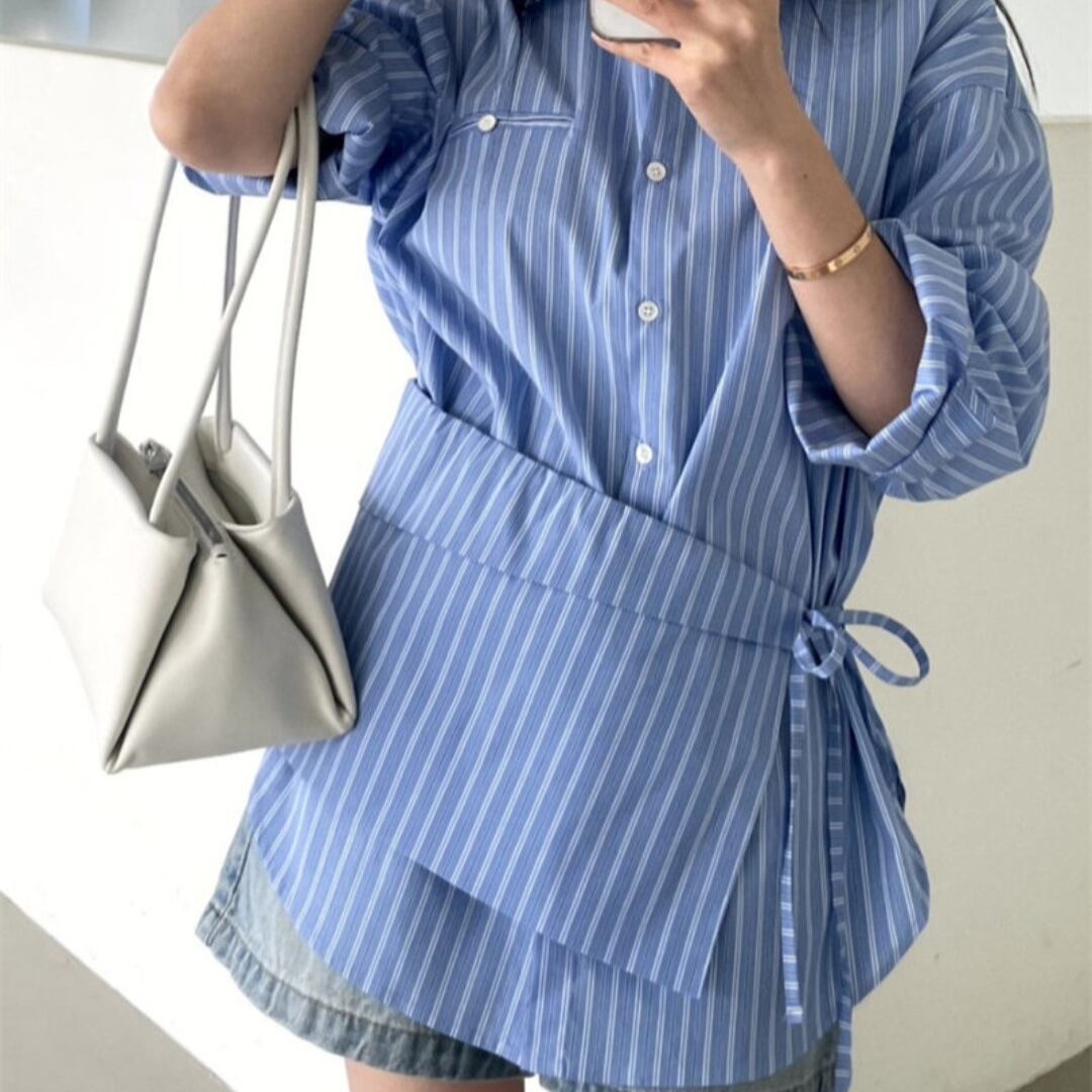 シンプルでありながらも印象的なストライプ柄が特徴的な一着です。コットン・ポリエステルを使用しており、肌触りが柔らかく、通気性にも優れています。フリーサイズなので、様々な体型の方にご着用いただけます。ストライプのデザインは、洗練された印象を与えつつ、どんなスタイルにも馴染むため、普段使いからお出かけまで幅広く活躍します。このブラウスで、あなたのコーディネートに新たな魅力を加え、毎日をもっと楽しく過ごしてみませんか?